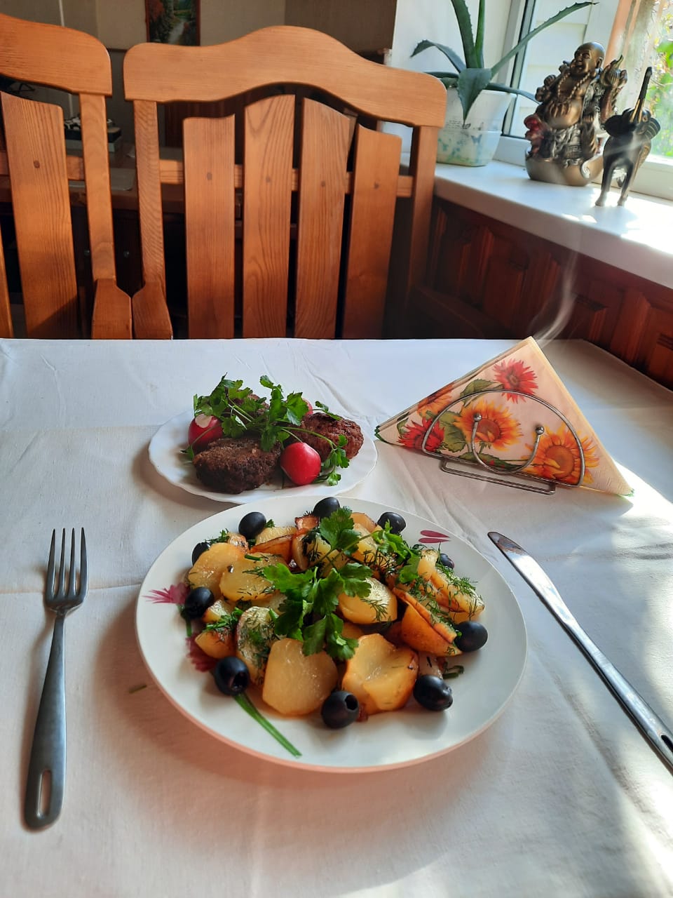 Очень близко к морю. На набережной много кафешек и ресторанчиков, где можно вкусно и недорого покушать. Мы мечтаем скоро вернуться к Вам.